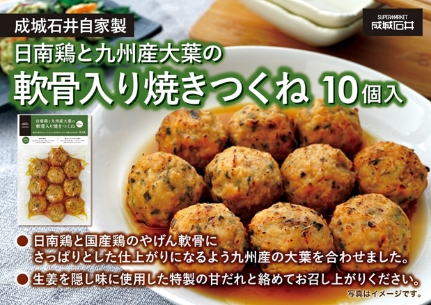 日南鶏むね肉と淡路島産玉葱を混ぜて焼きあげました。軟骨の食感と大葉の香りをお楽しみいただけます。