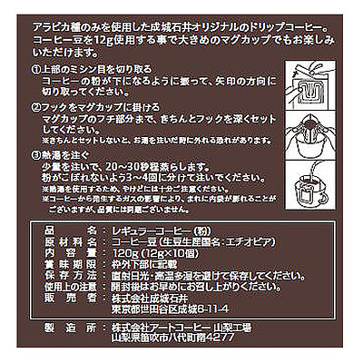 大きめのマグカップでもお楽しみ頂ける様、アラビカ種のコーヒー豆を12g使用。爽やかな酸味とまろやかな甘みが特長です。浅煎りタイプ