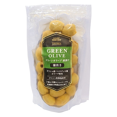 食べやすく種を抜いたグリーンオリーブです。そのままおつまみにしても、スライスしてサラダやパスタにもお使いいただけます。