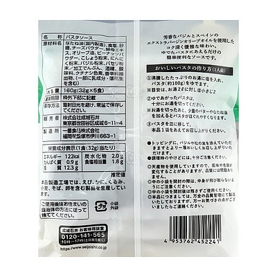 香り高いバジルにチーズやガーリックをあわせた、深いコクと爽やかな風味のパスタソースです。
