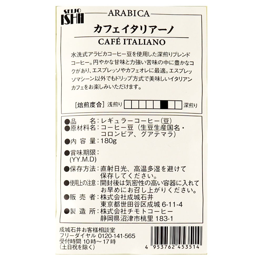 - > 成城石井 カフェイタリアーノ 180g×6個【豆】