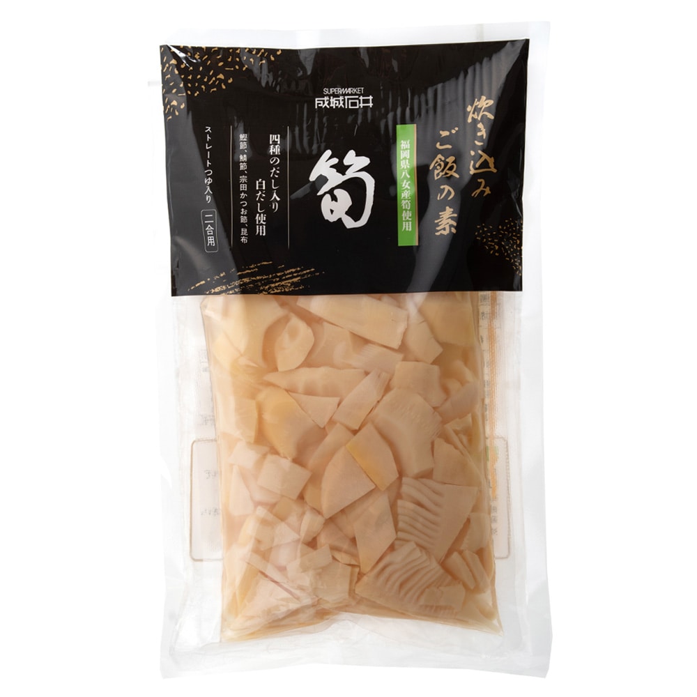 食感と風味が良い福岡県八女産の筍をふんだんに使った炊き込みご飯の素。出汁がきいた優しい味わいの筍ご飯をお楽しみください。