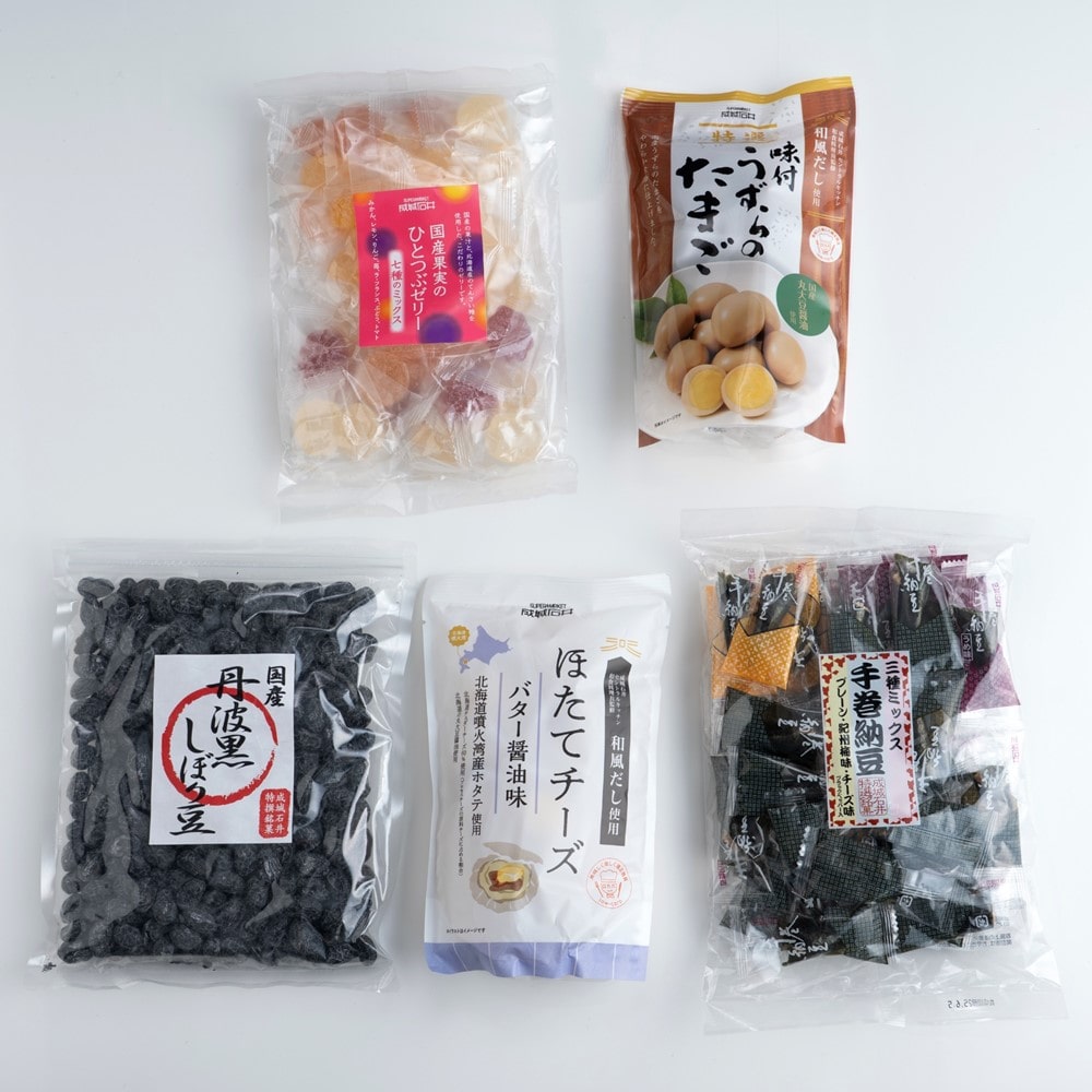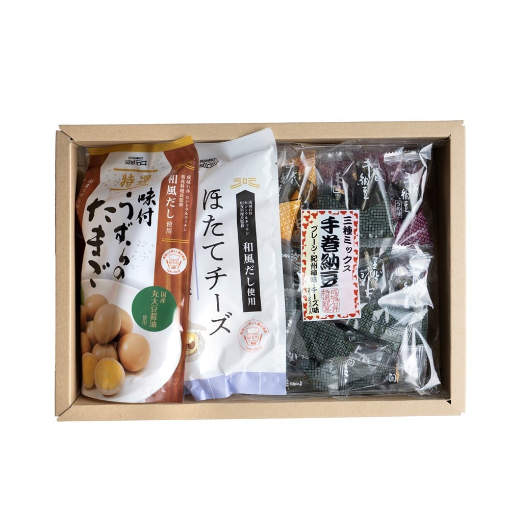 | 商品内容 | 成城石井 国産丹波黒しぼり豆×1 成城石井 手巻納豆 三種ミックス×1 成城石井 国産果実のひとつぶゼリー七種ミックス×1 成城石井ほたてチーズ バター醤油味×1 成城石井 特選味付うずらのたまご×1 6種野菜と9種スパイスのトマトカレー180g×2 |