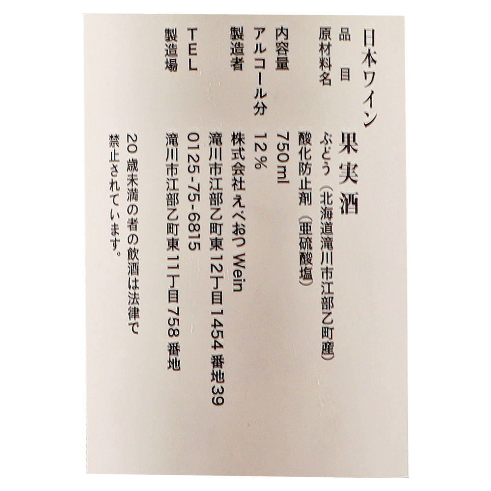 2023年に待望の自社ワイナリー生産を開始し、中空知地域で初のワイナリーとなった「えべおつWein(ヴァイン)」。2016年から滝川市江部乙の地でぶどう栽培に取り組み、2018年から委託醸造でワイン作りを始めました。栽培ぶどう品種は、ピノノワール、ツヴァイゲルトレーベ、ピノグリ、ピノブラン、ミュラー・トゥルガウ、シャルドネ、リースリングの7品種です。畑では有機肥料を中心とした土作りから、化成肥料や除草剤も使用せず草生栽培。醸造では野生酵母を使用した自然な醸造法で江部乙産ぶどうの豊かな果実の風味と、綺麗な酸がありながら、柔らかい口当たりの素敵なワインを造っています。2023年は自社醸造ファーストヴィンテージとなり、良質なぶどうも例年より多く収穫出来ましたが、総生産本数は8600本とまだまだ少なく、この美味しさを多くの皆様へもっとお届けできるように、私たちも応援しています!