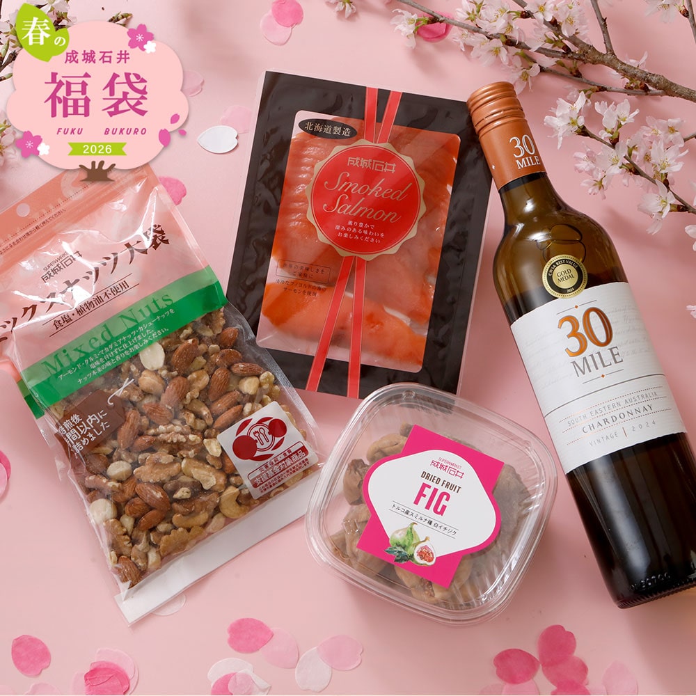 | セット内容 | ● 9337739000119 30マイル シャルドネ 750ml ● 4953762432113 成城石井 スモークサーモンスライス 130g ● 4953762460482 成城石井 トルコ産スミルナ種白イチジク 210g ● 4953762423944 成城石井 ミックスナッツ大袋 300g ● 4519490711304 成城石井 ショッピングバッグ ライトシナモン |