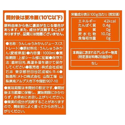 愛媛県産温州みかんのストレート果汁のみを使用。搾汁方法にこだわった、みかんの味をそのまま楽しめるジュースです。