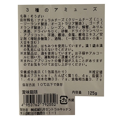 かずのこチーズ、4種ドライフルーツのクリームチーズ、ラムレーズンがたっぷり入ったクリームチーズの3種類を詰め合わせました