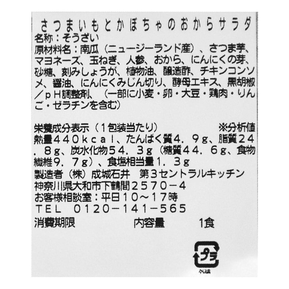 蒸したさつまいもとかぼちゃに玉葱やにんにくの芽を混ぜたおからサラダを合わせました。素材の甘みににんにくの芽の食感と香りがアクセントになっています。