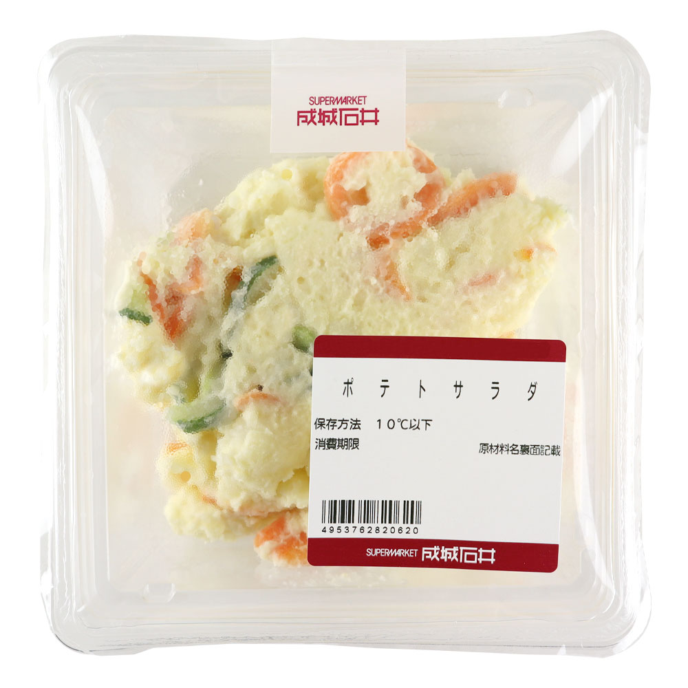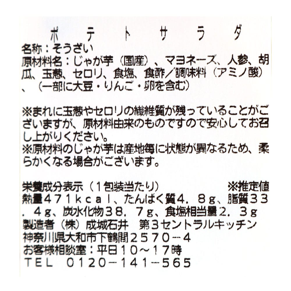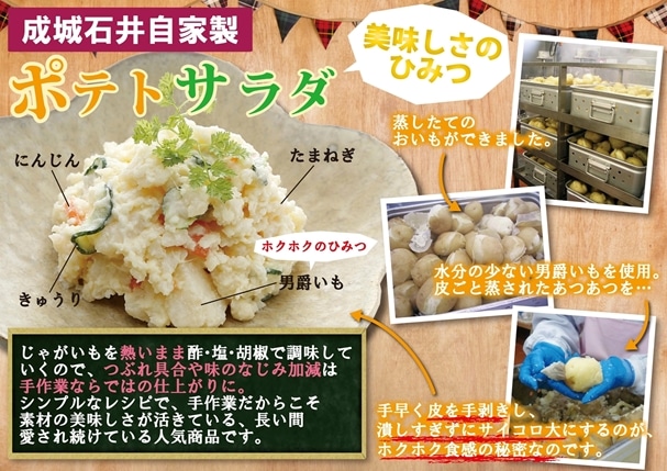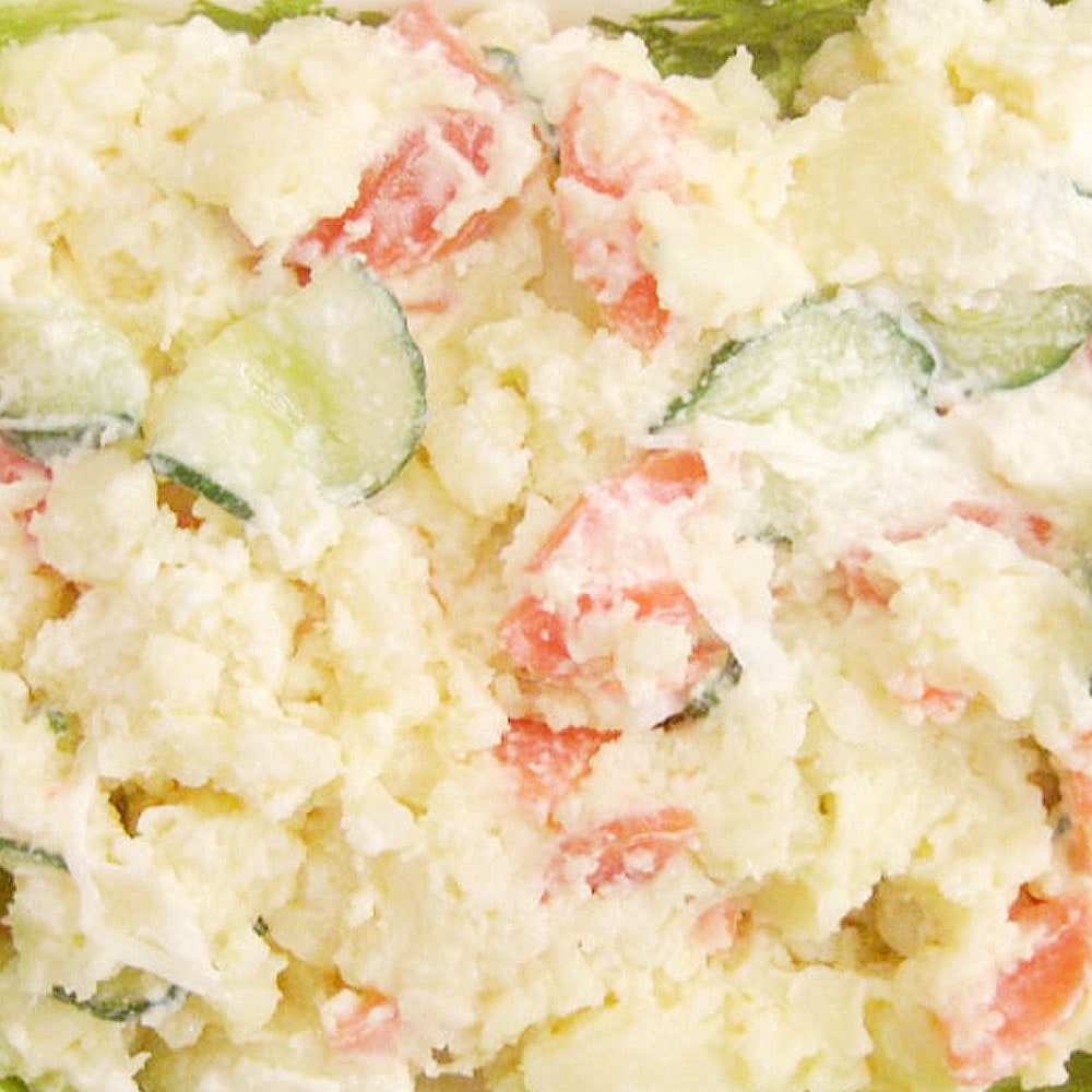 じゃがいもの皮を手で丁寧にむいて、手で潰しているのでホクホクとした食感が楽しめる人気のサラダです。