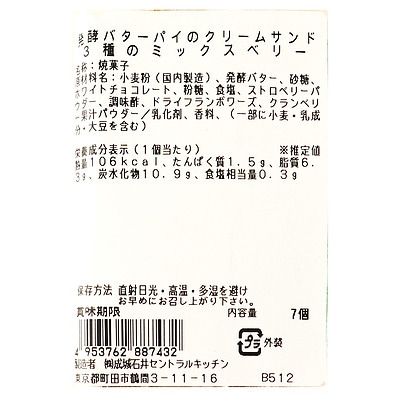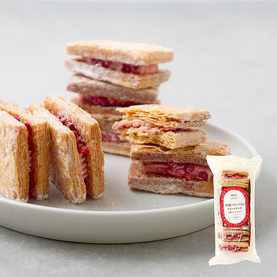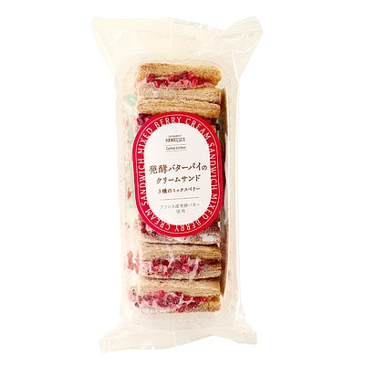 いちご、クランベリー、フランボワーズの3種のベリーを使用した甘酸っぱいクリームをサクサクのパイ生地でサンドしました。