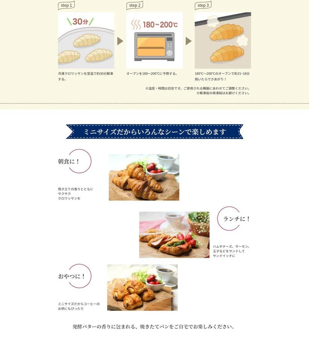 ミニクロワッサン65個、ミニパンオショコラ70個