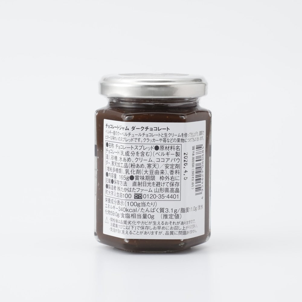 ベルギー産のダークチョコレートを使用した、チョコレートジャムです。生クリームを加え、チョコレートのビターさの中に深い味わいのあるジャムに仕上げました。