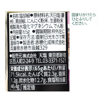 天塩に、厳選した黒胡椒とにんにくエキス、生姜エキスをブレンドして顆粒状にしました。炒め物などの味付けに。