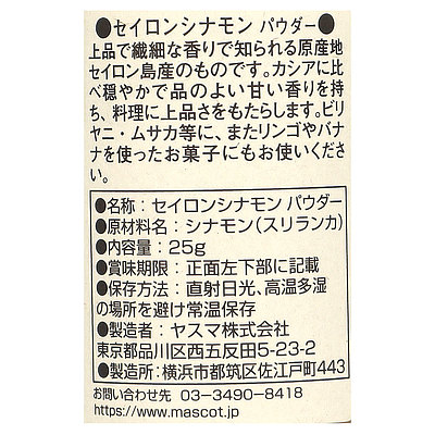 - > マスコット セイロンシナモン(パウダー) 25g