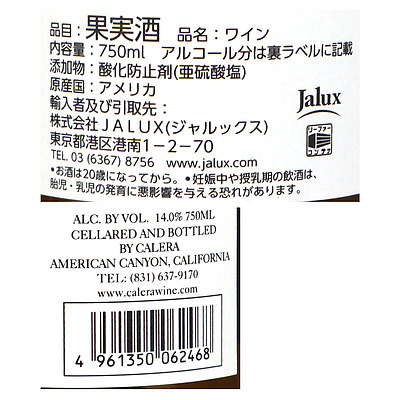 「カリフォルニアのロマネコンティ」の異名を持つカレラの日本限定アイテム。柑橘系の香りが感じられ、オークの香りも心地よく感じる。