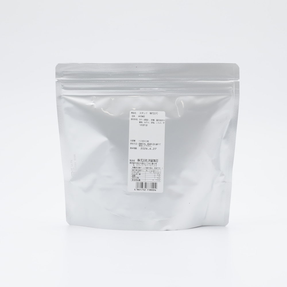 色、艶、風味のいい海苔です。味を付けて使いやすいスタンドパックにしました。