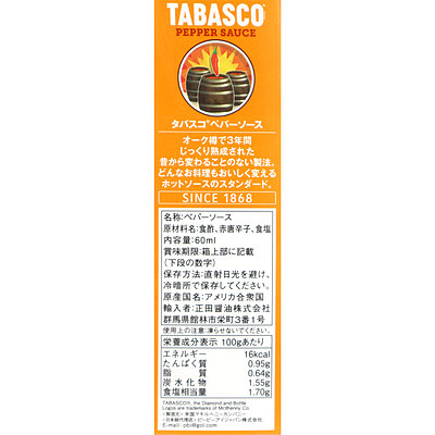 原料はタバスコ唐辛子、塩、ビネガー。長年変わることなく受け継がれたホットソースのスタンダードです。