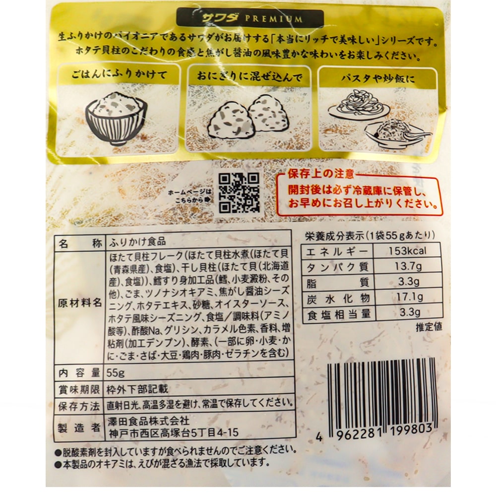 北海道産の干し貝柱と青森県産の貝柱水煮を使用し炉端焼きで食べるような芳ばしい焦がし醤油風味に仕上げました。バターを加えてバター醤油味でも美味しくお召し上がり頂けます。