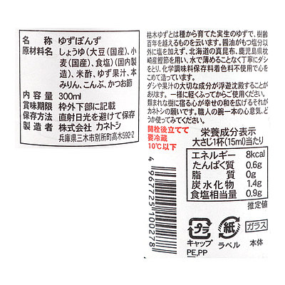 - > カネトシ 手造り枯木柚子ポン酢 300ml