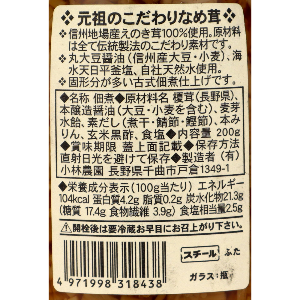 - > 小林農園 元祖こだわりなめ茸 200g [8438]