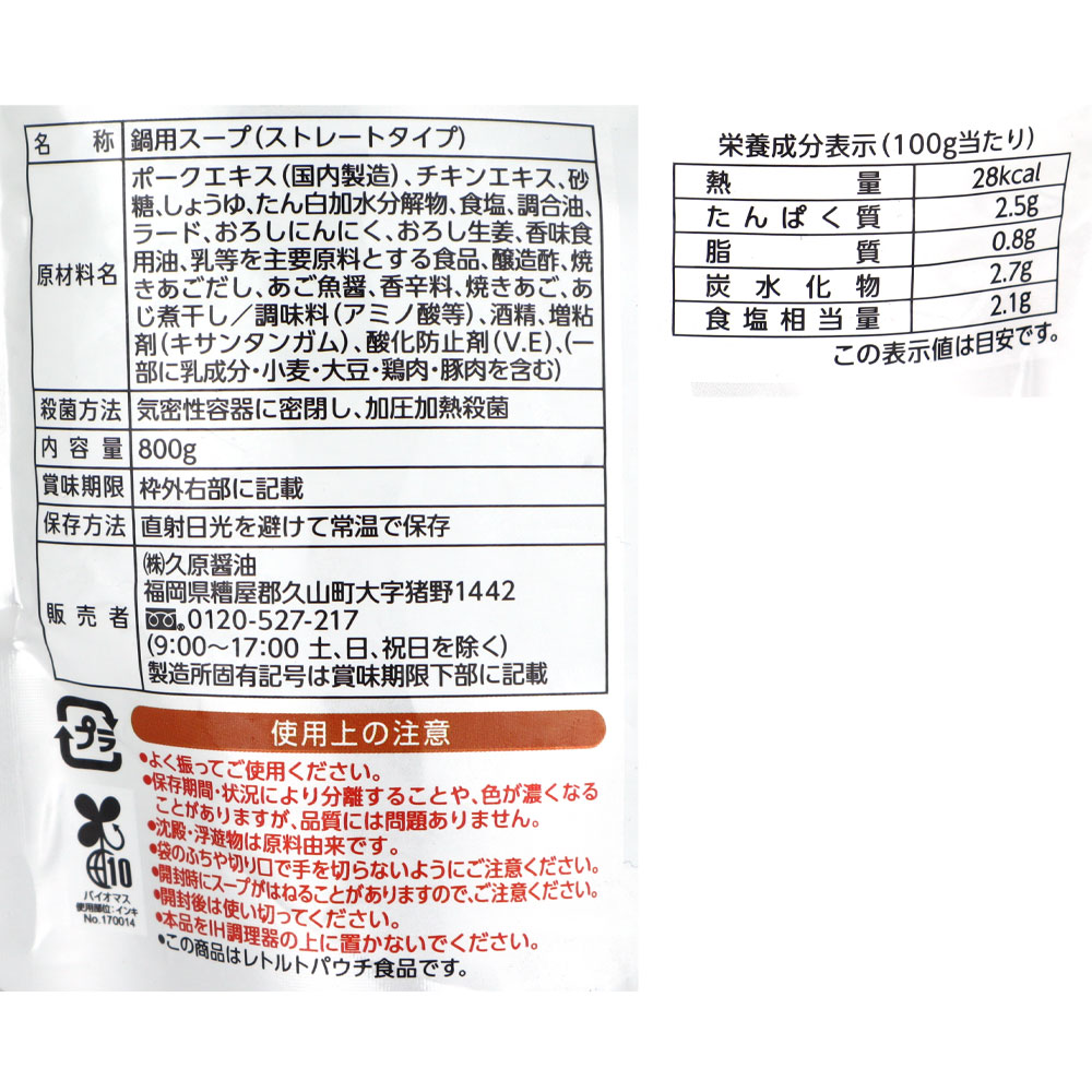 - > 久原醤油 あごだし博多とんこつ鍋 800g [2813]