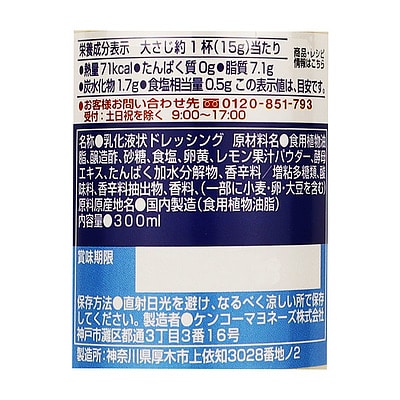 レモン風味のコールスロー用ドレッシング。サーモン等の魚介類にもよくあいます。