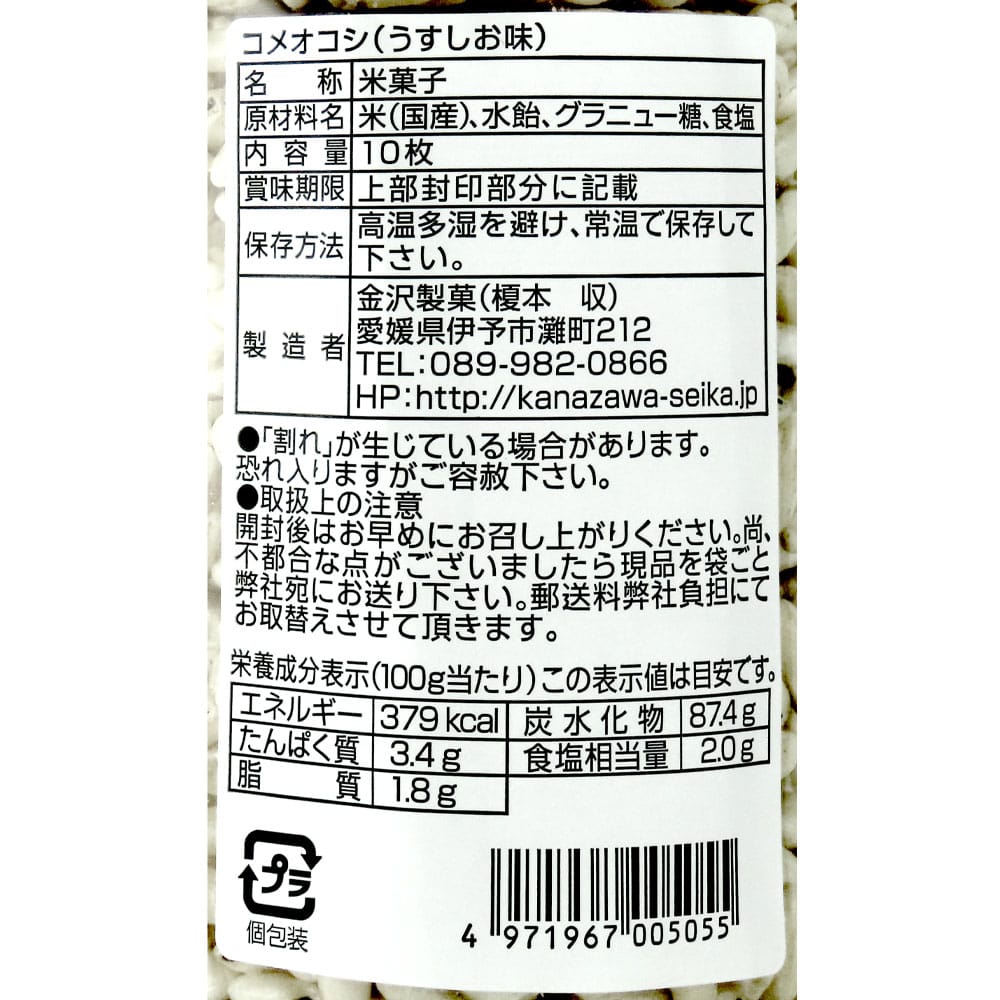 - > 金沢製菓 コメオコシ(うすしお味) 10枚