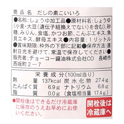 醤油をベースに焼津産の鰹本節、北海道の昆布、三温糖などこだわりの原料でダシをとった濃縮タイプのだしの素です。