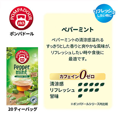 清涼感の中に、ほんのり上品な甘味があります。食後のひとときや、ケーキ等と一緒にどうぞ。