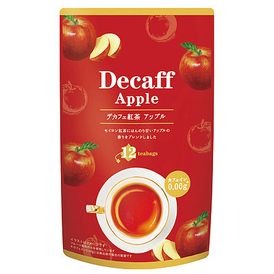 カフェインが苦手な方に嬉しい、0.00gで楽しめるデカフェ紅茶。アップルの香りがふんわり漂います。