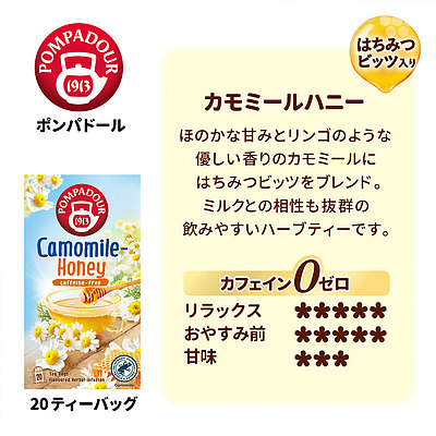 カモミールにはちみつのビッツをブレンド。ミルクとの相性も抜群です。