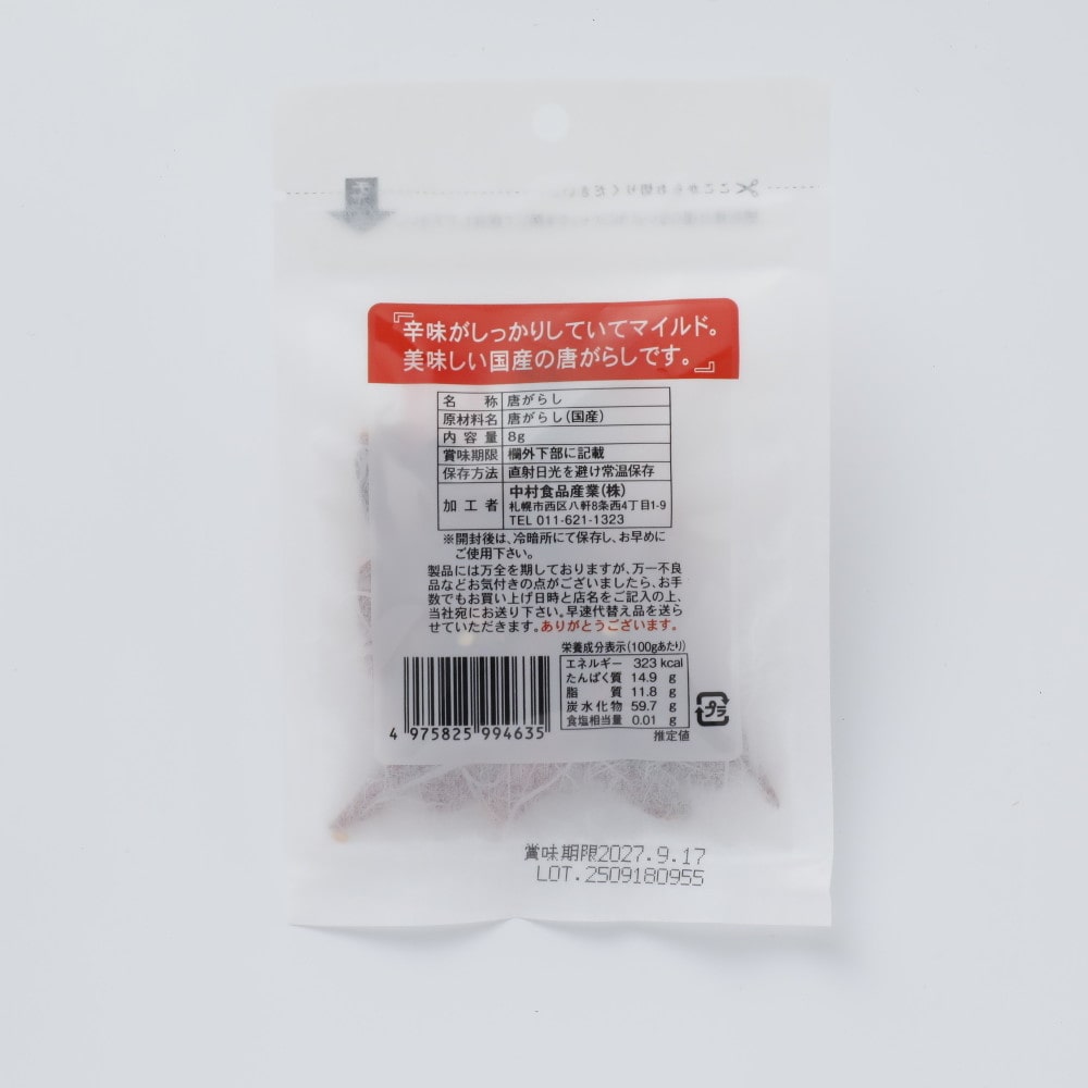 - > 中村食品産業 感動の純日本産鷹の爪唐がらし 8g
