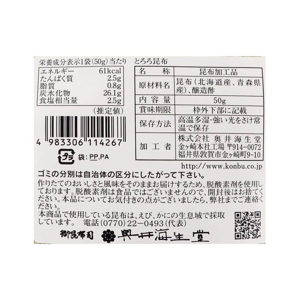 - > 奥井 とろろ昆布 50g