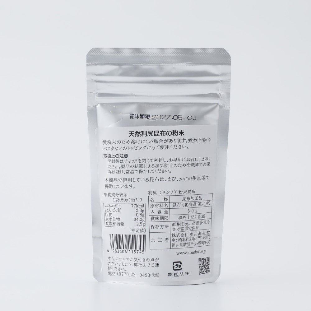 礼文島で収獲される利尻昆布のみで作りました。微粉末状になっており、お吸物に入れたり、様々な用途でお使い下さい。