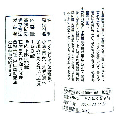 - > カネモリ 七年熟成木桶しょうゆ 150ml