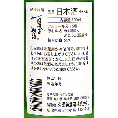 - > 新潟 夏子物語 純米吟醸 720ml