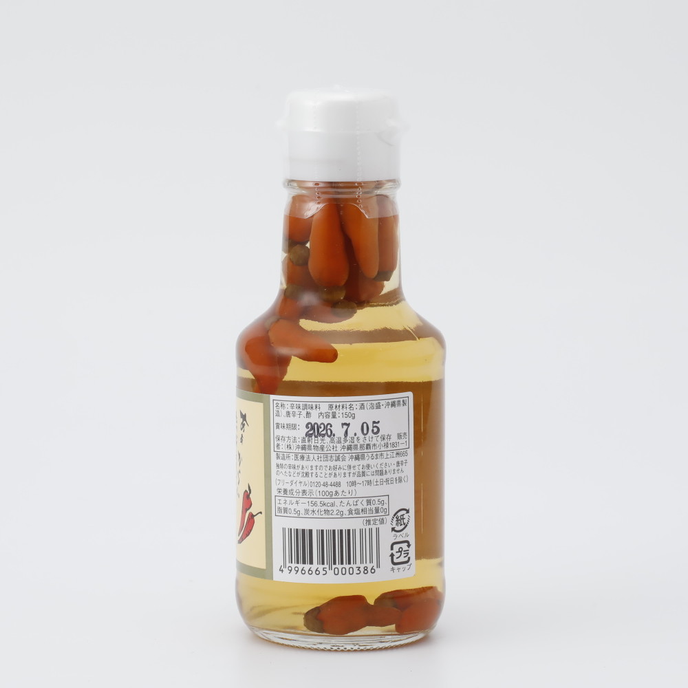 唐辛子の泡盛漬け。沖縄そば、うどん、鍋物などにご利用下さい。