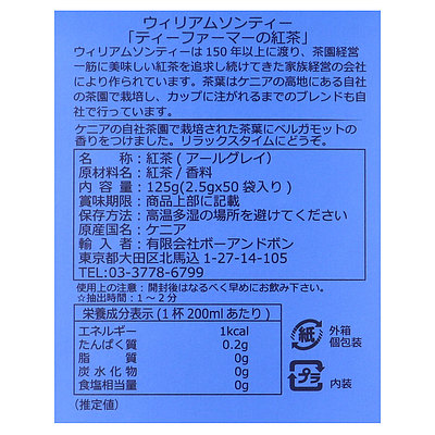 ケニアのメーカー自社農園の茶葉にベルガモットの香りをつけた人気のブレンドです。ストレートでもミルクでも。
