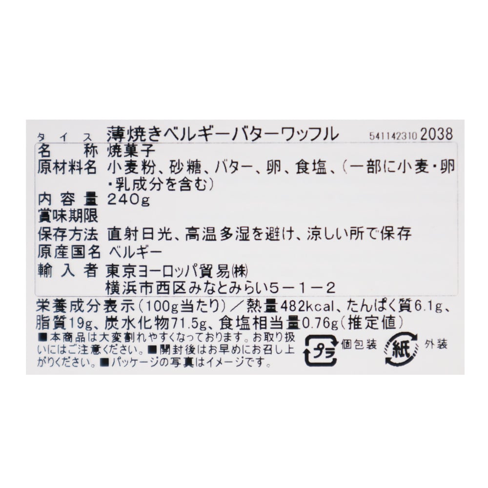 ワッフルの本場ベルギーの、バター香る薄焼きワッフルです。