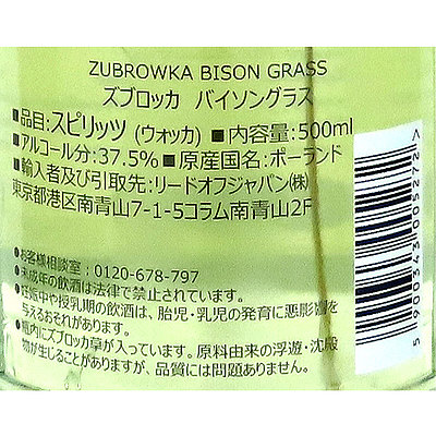 バイソンが好んで食べるズブロッカ草の香りを添えたウォッカ。やさしい香りにアルコールの甘みがマッチ。