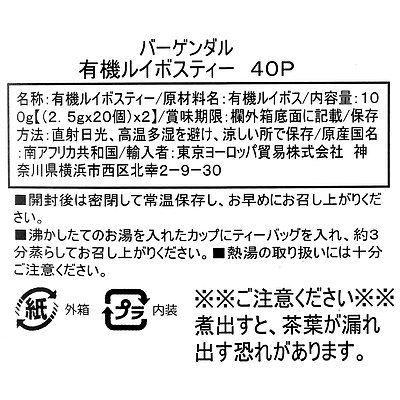 - > バーゲンダル 有機ルイボスティー 40p×3個