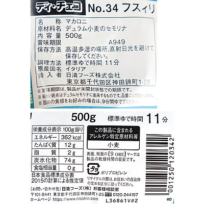 - > ディ・チェコ No.34 フスィリ 500g×3個