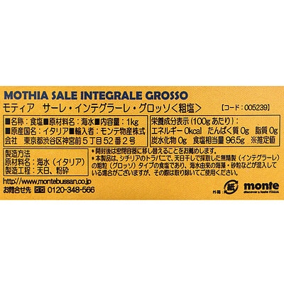 - > モティア サーレ・インテグラーレ・グロッソ 1kg×3個