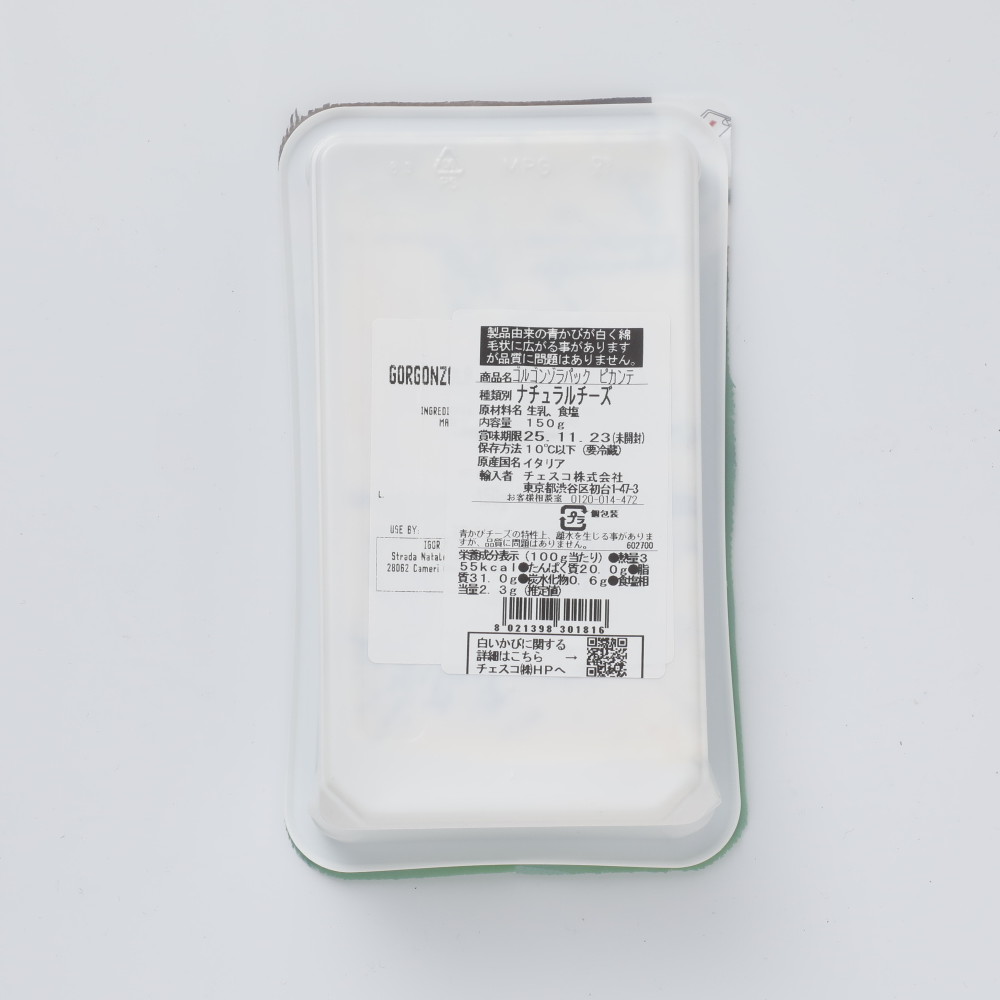 ゴルゴンゾーラのピカンテ(辛口)タイプ。ピリッとシャープな味わいが特徴。ドライフルーツやハチミツを添えてワインのお供に。