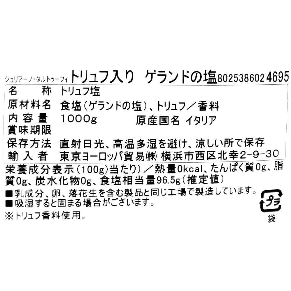 イタリア産の黒トリュフとフランス産のゲランドの塩を使用。ひとさじお料理にふりかければトリュフの芳醇な香りが広がります。大容量規格。