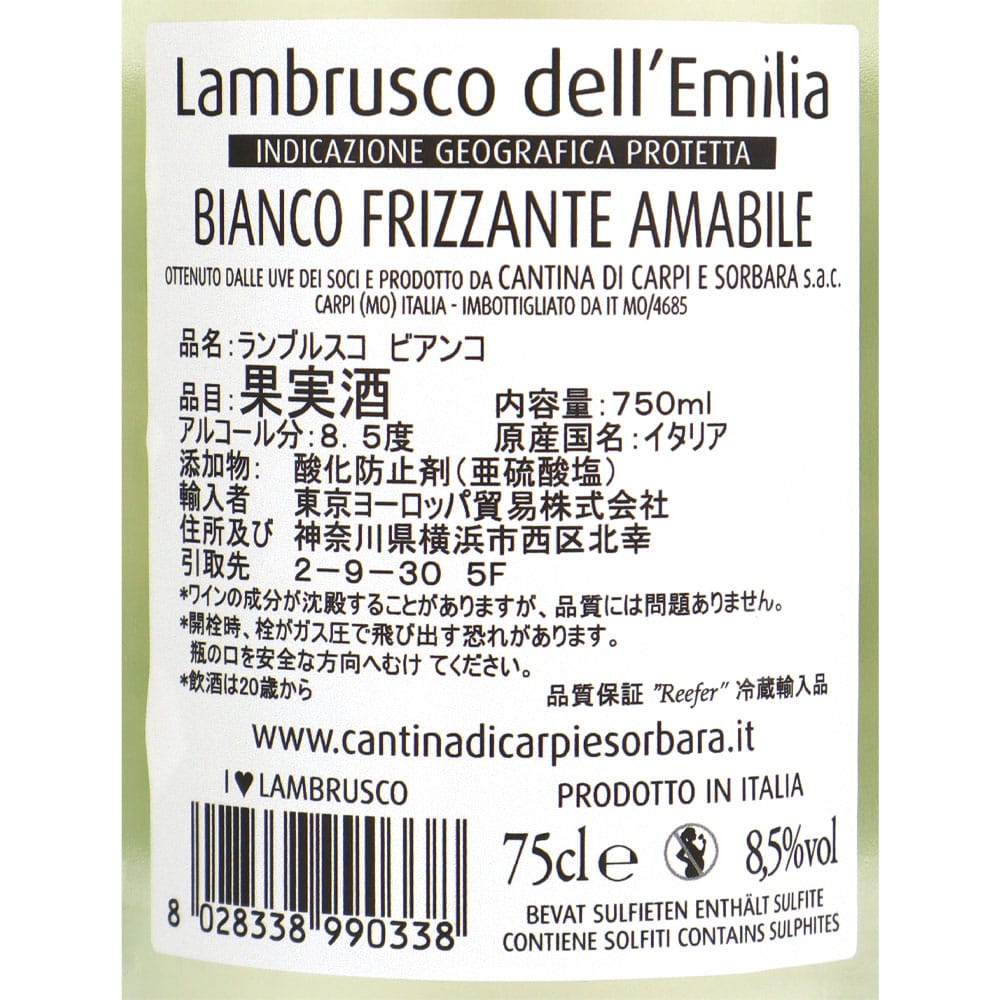 【生産者:カンティーナ ディ ソルバーラ】甘みが心地良くフルーティで飲みやすい味わいです。軽めの食事や食前酒としてもおすすめ、フルーツ系のデザートとの相性も◎。