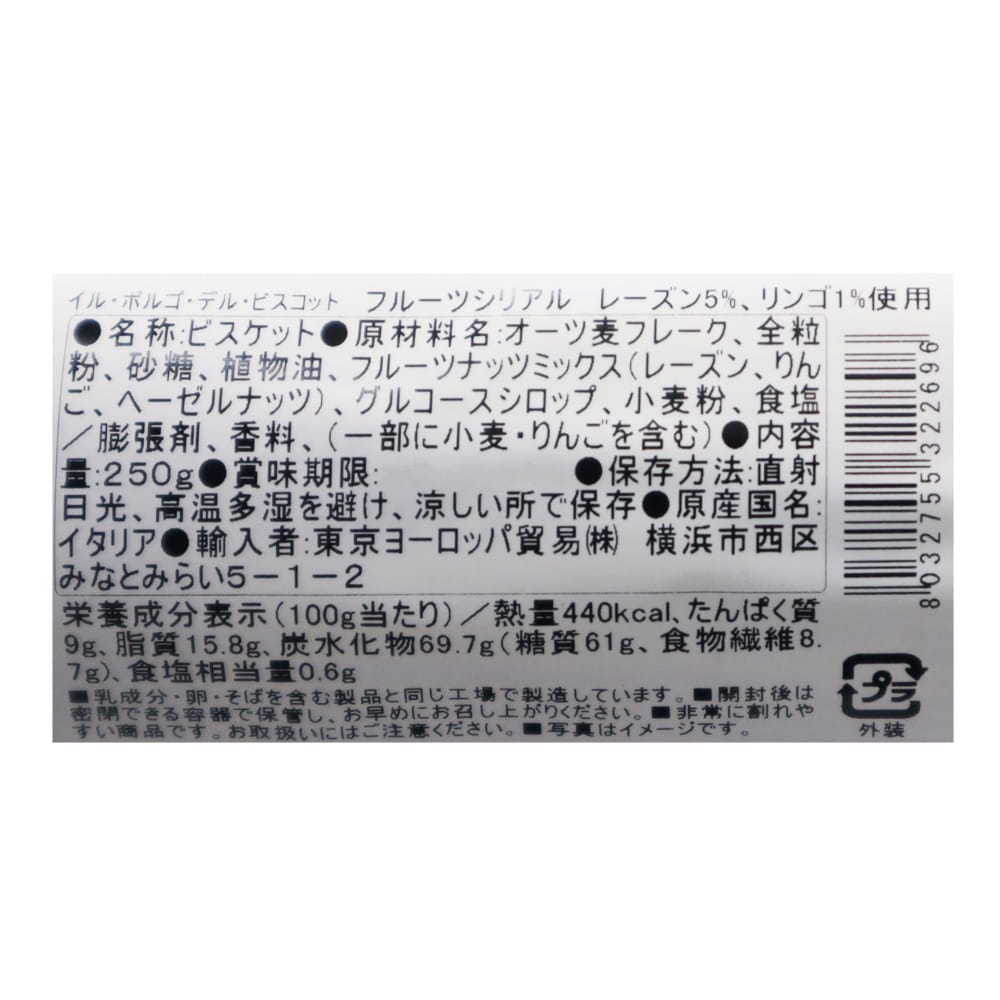 レーズンとりんごの甘みと酸味がバランスのいいビスケットです。