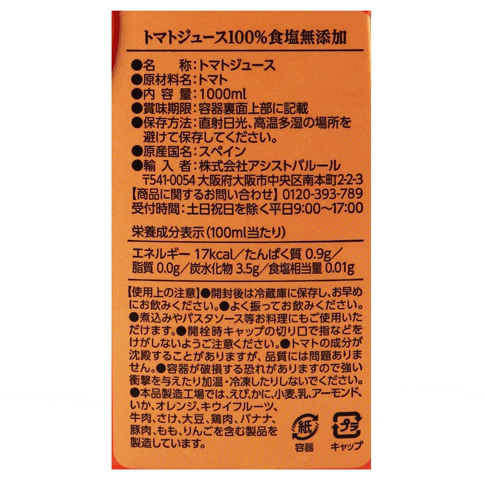 スペイン産トマトのみを約10個分食塩無添加でスクイーズ(生絞り)したストレートジュースです。