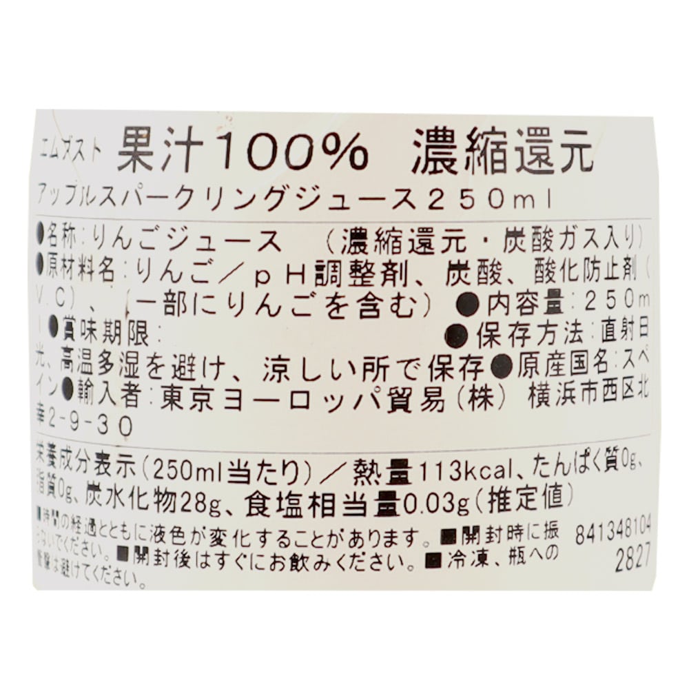 ヨーロッパ産りんご果汁を使用した、果汁100%スパークリングジュースです。