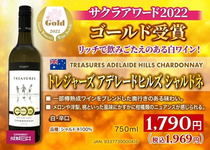 一部樽熟成ワインをブレンド。果実感とエレガントな酸味があり飲み応えがあるタイプ。メロンや洋梨、桃といった風味にかすかに柑橘類のニュアンスが感じられます。